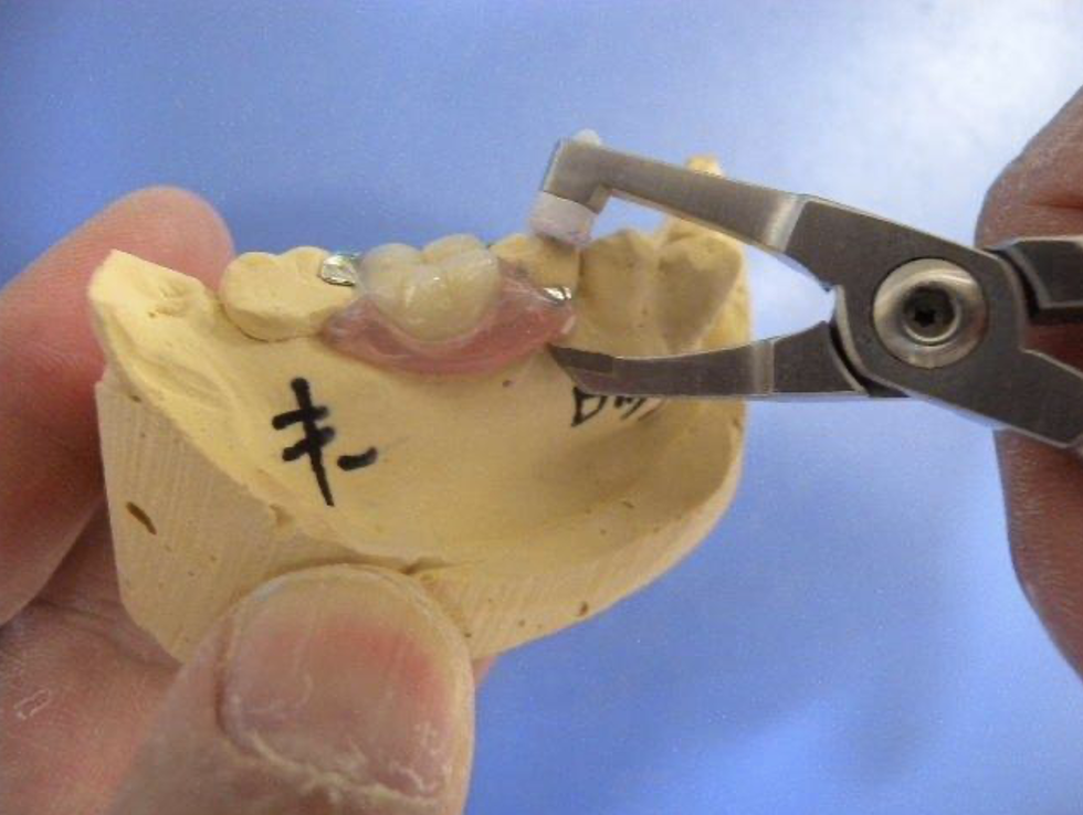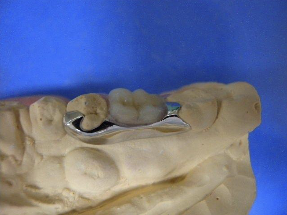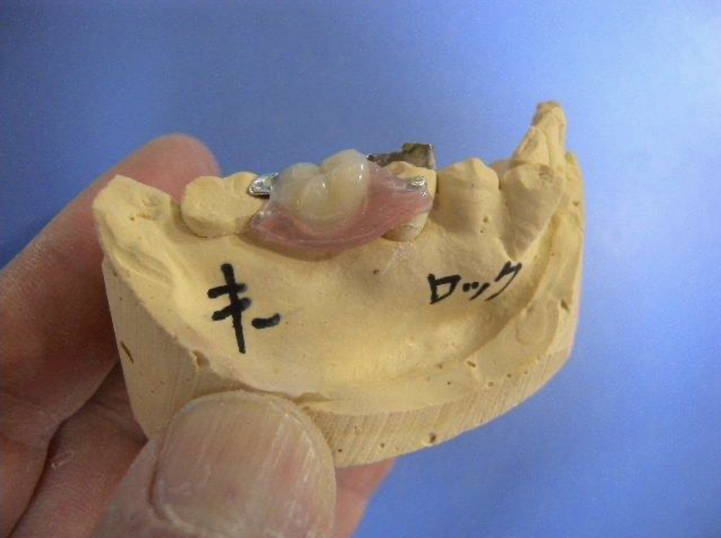 1歯欠損のミラクルデンチャーです。ミラクルデンチャーは特許製品で、従来の入れ歯に比べてぴったりフィットして違和感の少ないよく噛める入れ歯です。